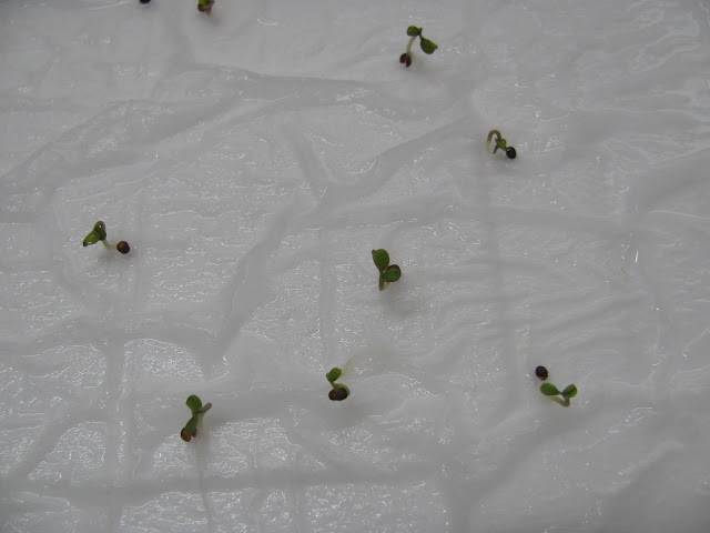 こうなったら奥の手だ。皿に湿らせたティッシュを敷いて、そこに残りの種を追加でまいてみたぜ。
