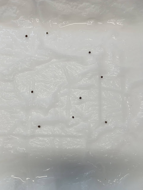 スポンジをサイコロみたいに小さく切って、その上に種をまく。スポンジに切れ込みを入れて、種を埋め込むのも良さそうだ。