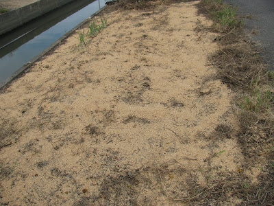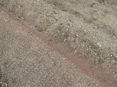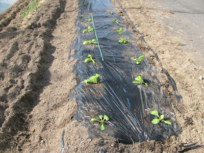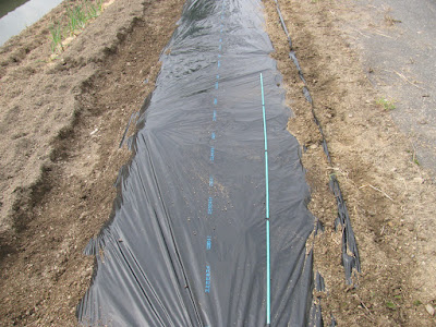 次に畝を立てて、肥料をまく。そして、一番の難関、黒マルチを急いで張った。