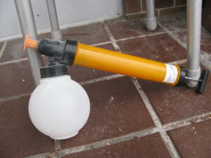 今日は、用意していたトレボン粉剤を白菜の葉の上から、噴霧器で均一に散布してやったぜ。