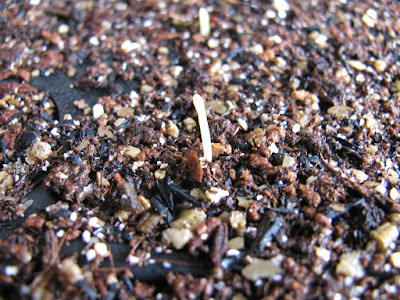 まだちっちゃいけど、あの細いネギみたいな芽が土からひょっこり顔を出してるんだ。
