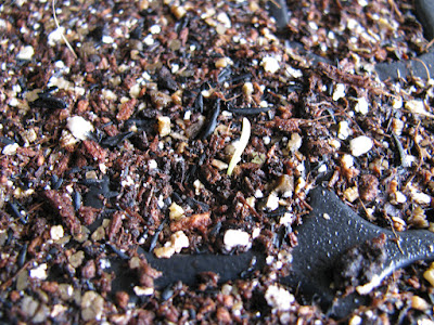 育苗箱を覗いてみたら…おぉ!ちゃんと何カ所かで発芽してるじゃねぇか!