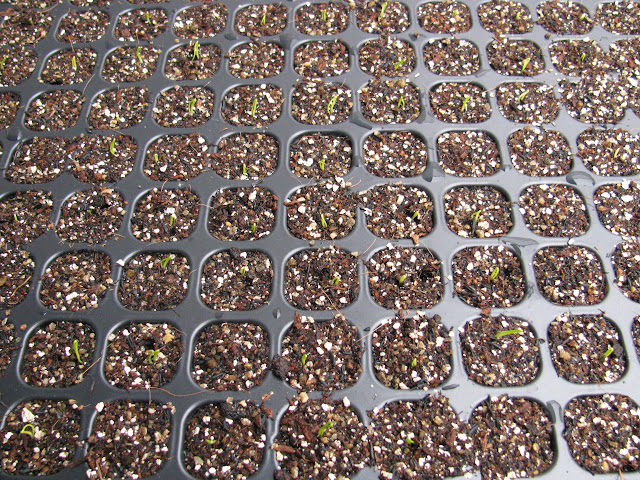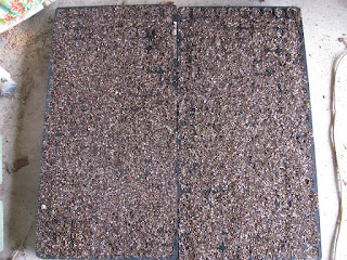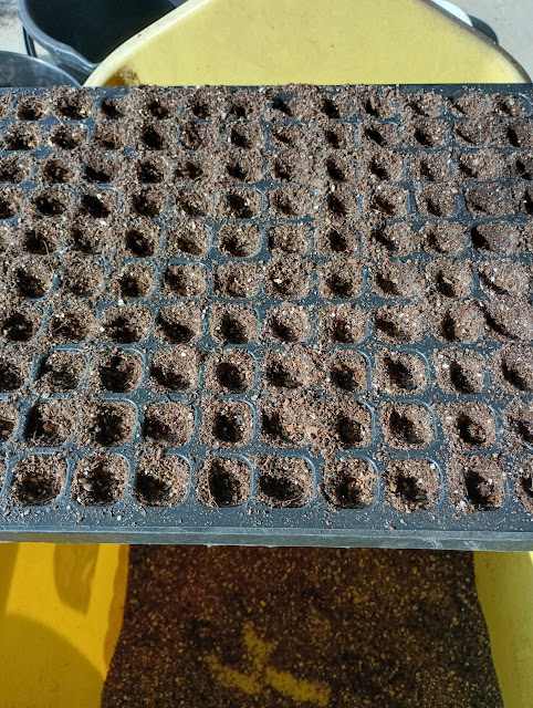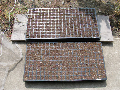 - 種まき用の土を200穴のセルトレイに入れ、平らにならしました。